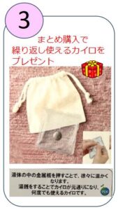 繰り返し使えるリウォームカイロ(ポーチ付き)をプレゼント。